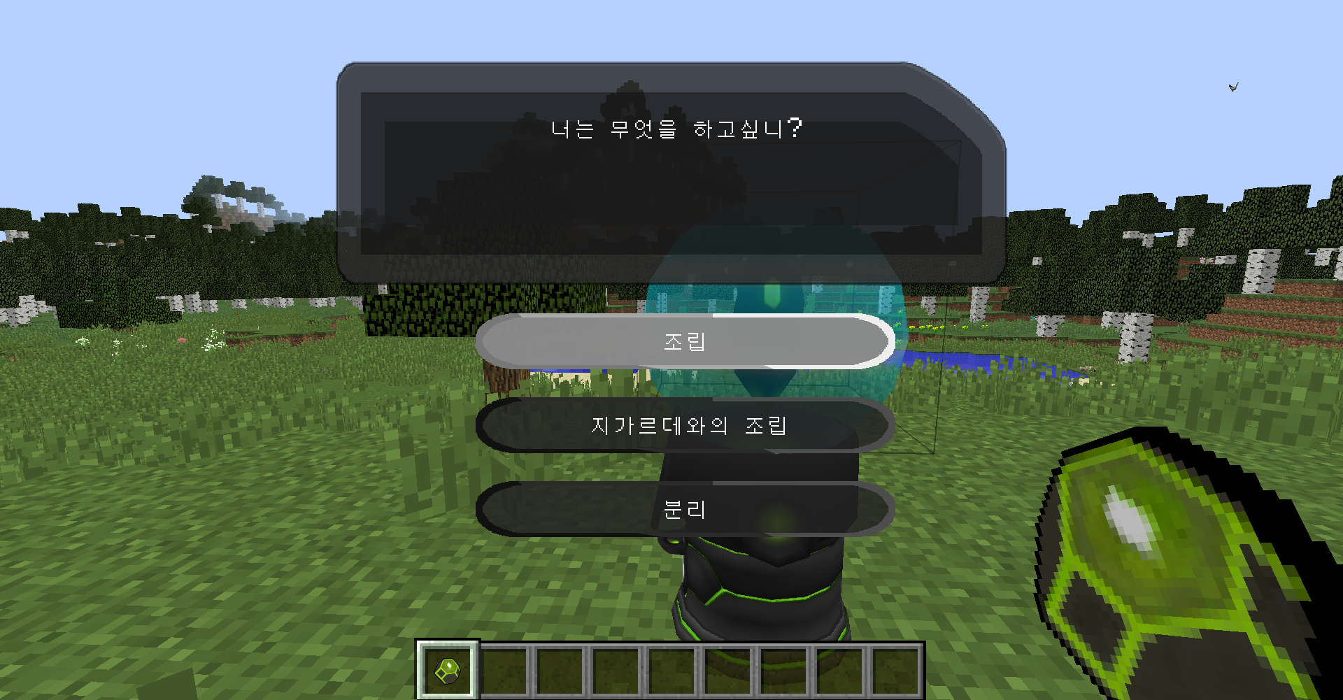 조건을 충족한 후 지가르데 조립 장치에 큐브를 들고 우클릭하면 아래와 같은 창이 뜨게 됩니다.