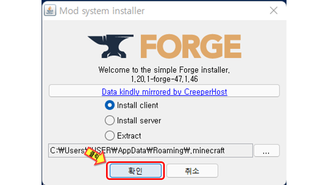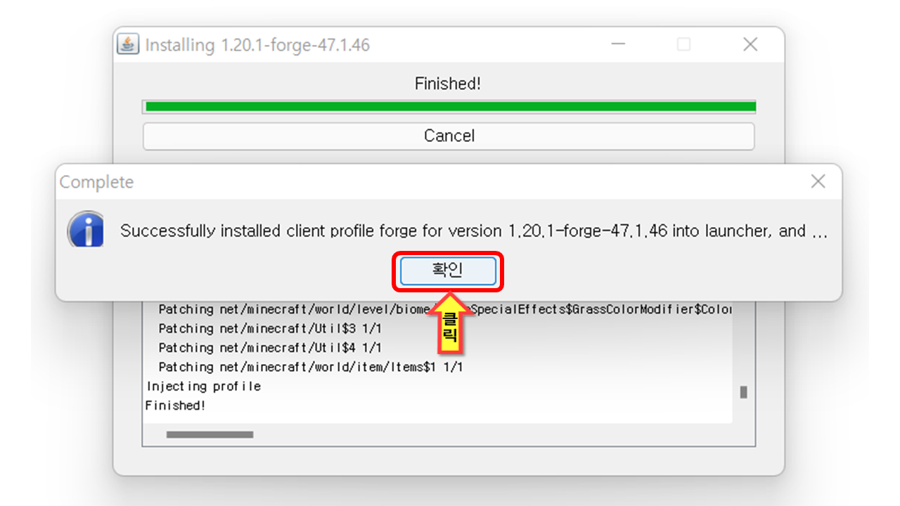 11. 포지가 실행되었다면 확인을 클릭하세요.